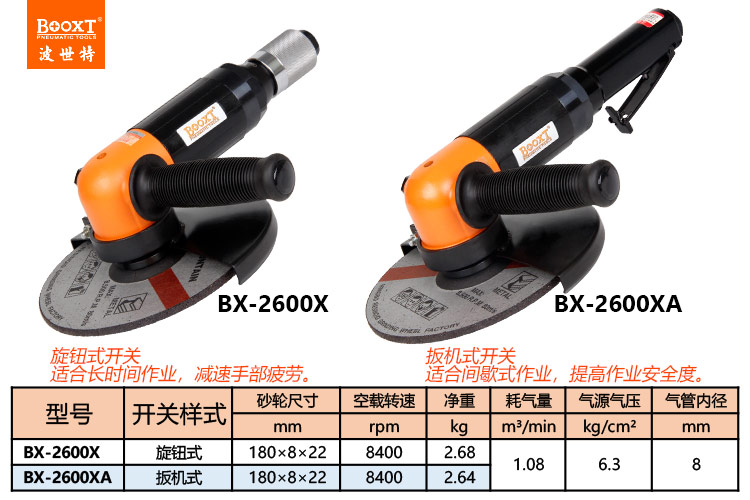 東莞市強(qiáng)勁五金工具有限公司提供臺灣BOOXT波世特品牌氣動工具,180氣動角磨機(jī)BX-2600XA廠家直銷,首件享特價。咨詢熱線:4008301980