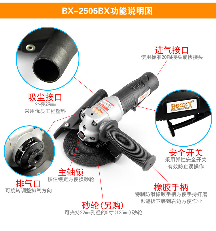 東莞市強(qiáng)勁五金工具有限公司提供臺灣BOOXT波世特品牌氣動工具,吸塵氣動角磨機(jī)BX-2505BX廠家直銷,首件享特價。