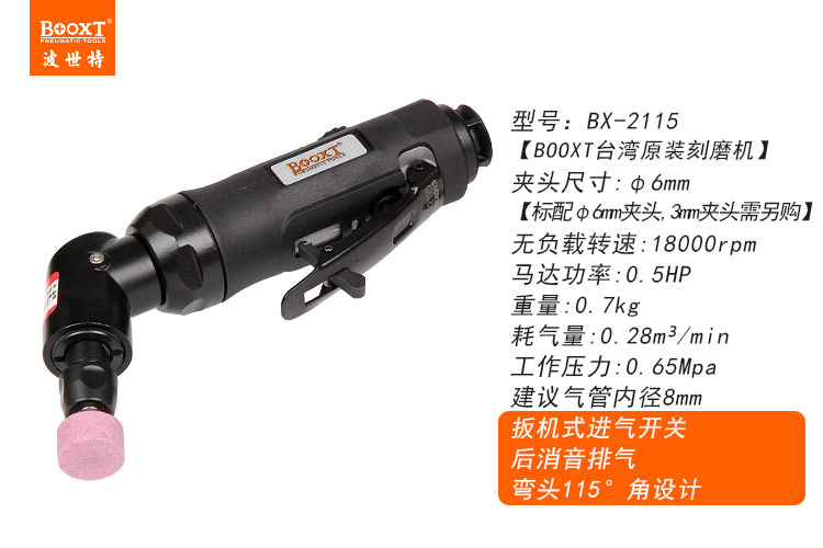 東莞市強(qiáng)勁五金工具有限公司提供臺(tái)灣BOOXT波世特品牌氣動(dòng)工具,115度彎頭刻磨機(jī)BX-2115廠家直銷(xiāo),首件享特價(jià)。咨詢(xún)熱線(xiàn):4008301980