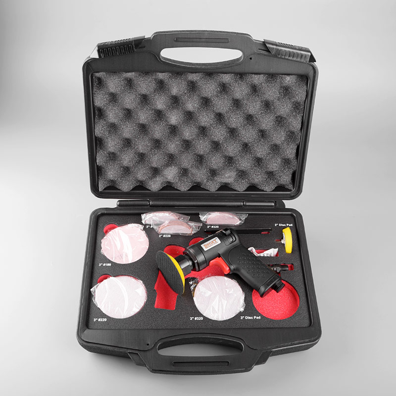 • 產(chǎn)品參數(shù): 底盤尺寸:50/75mm 偏心直徑:3mm 空載轉(zhuǎn)速:17000rpm 工具全長(zhǎng):118mm 重 量:0.5kg 耗 氣 量:84L/min 噪 音 值:83db(套裝)