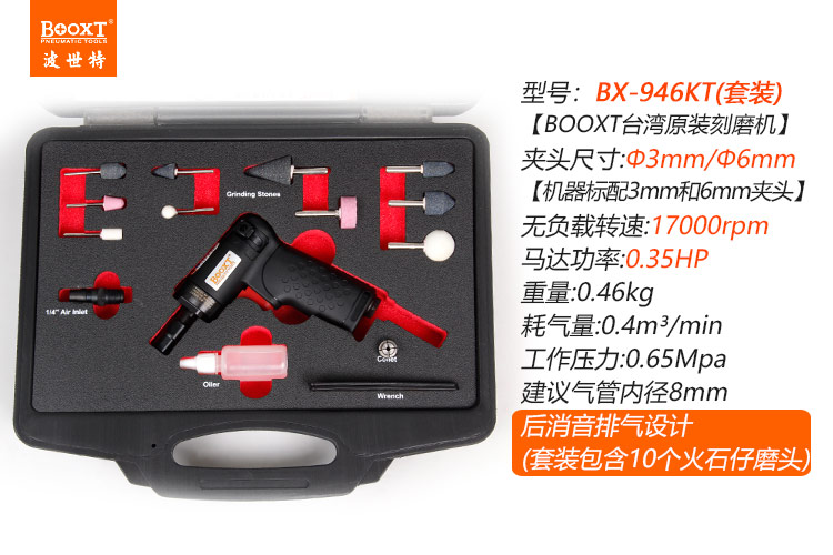 東莞市強(qiáng)勁五金工具有限公司提供臺(tái)灣BOOXT波世特品牌氣動(dòng)工具,風(fēng)磨機(jī)套裝BX-946KT廠家直銷,首件享特價(jià)。咨詢熱線:4008301980