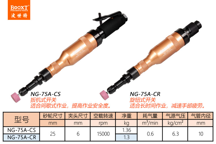 東莞市強(qiáng)勁五金工具有限公司提供臺(tái)灣BOOXT波世特品牌氣動(dòng)工具,加長氣動(dòng)直磨機(jī)NG-75A-CS廠家直銷,首件享特價(jià)。咨詢熱線:4008301980