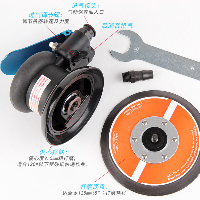 --粗磨偏心度幅度為9.5mm,扭力大,切削能力更大,適合重力打磨。工件一般幅面較大,要求打磨速度快,粗糙的打磨表面,如:玻璃鋼,UV,原子灰等材質(zhì)比較硬的工件,所用砂紙規(guī)格120#以下;