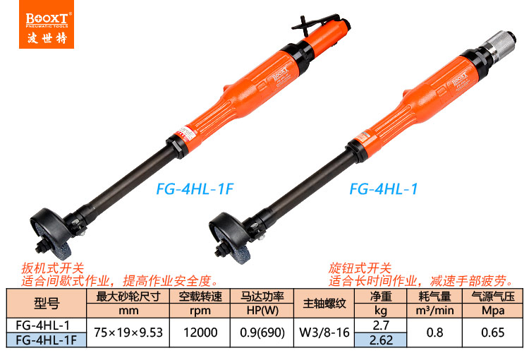 東莞市強(qiáng)勁五金工具有限公司提供臺(tái)灣BOOXT波世特品牌氣動(dòng)工具,加長(zhǎng)直柄風(fēng)動(dòng)砂輪機(jī)FG-4HL-1廠家直銷,首件享特價(jià)。咨詢熱線:4008301980