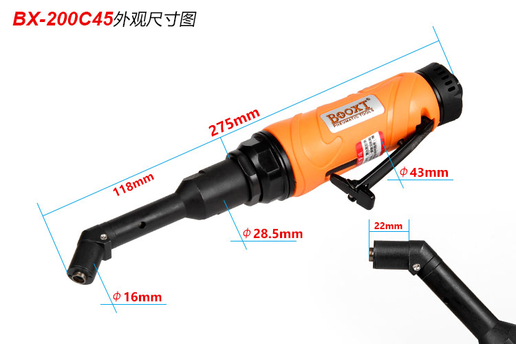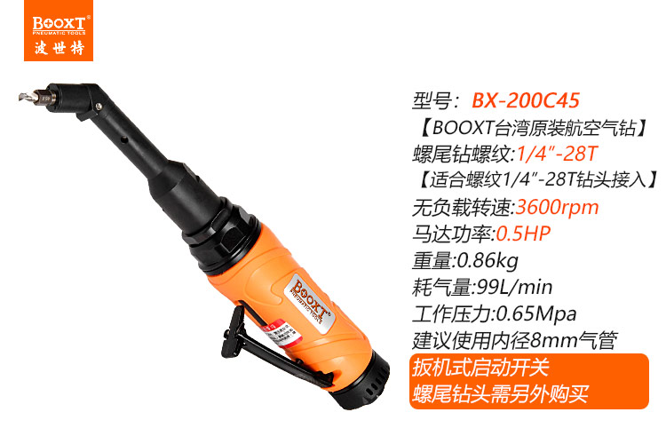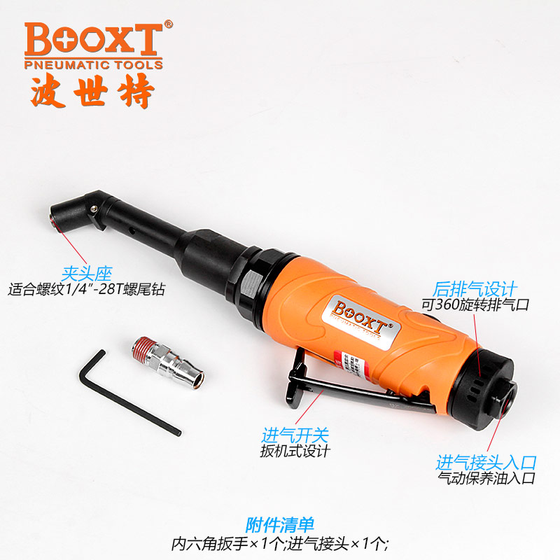 東莞市強勁五金工具有限公司提供臺灣BOOXT波世特品牌氣動工具,45度氣動彎鉆BX-200C45廠家直銷,首件享特價。咨詢熱線:4008301980