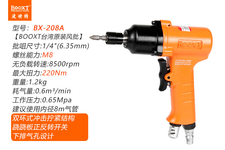 東莞市強勁五金工具有限公司提供臺灣BOOXT波世特品牌氣動工具,氣動風批槍BX-208A廠家直銷,首件享特價。咨詢熱線:4008301980
