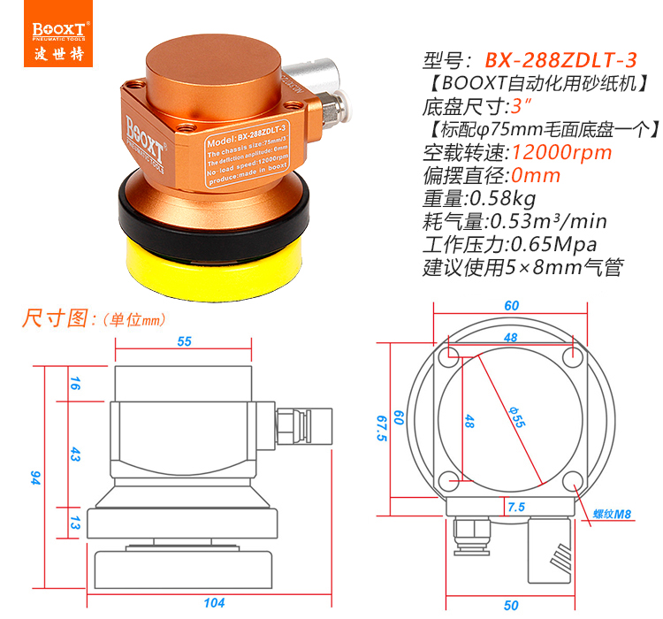 同心氣動砂紙機BX-288ZDLT-3