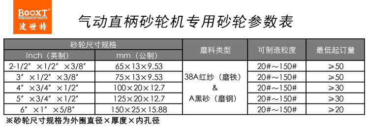 東莞市強(qiáng)勁五金工具有限公司提供臺(tái)灣BOOXT波世特品牌氣動(dòng)工具,氣動(dòng)直柄砂輪機(jī)砂輪廠家直銷,首件享特價(jià)。咨詢熱線:4008301980