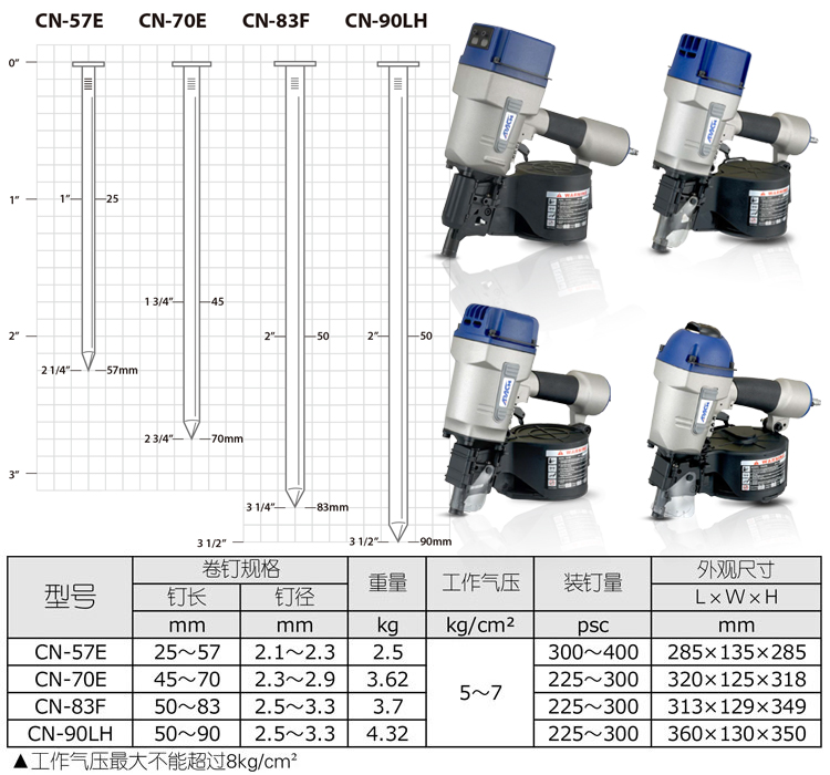 臺(tái)灣氣動(dòng)卷釘槍CN-70E特點(diǎn):