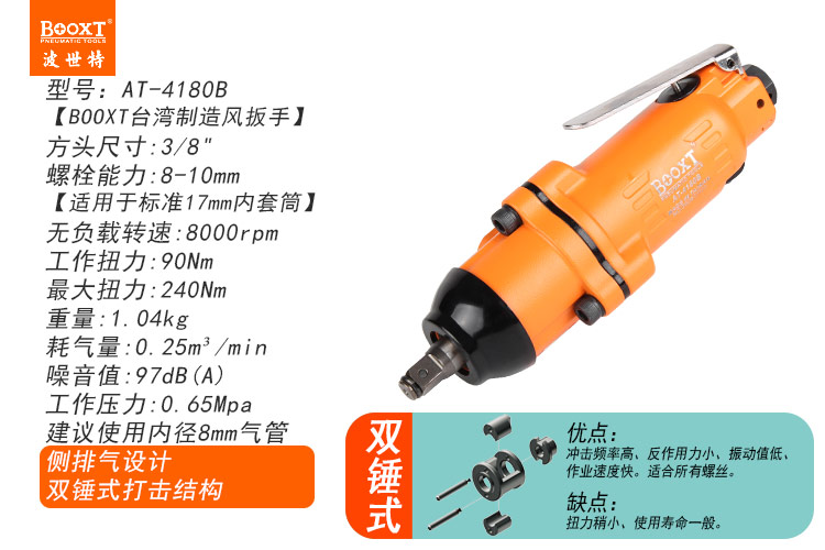 東莞市強(qiáng)勁五金工具有限公司提供臺灣BOOXT波世特品牌氣動工具,小型氣動扳手AT-4180B廠家直銷,首件享特價。咨詢熱線:4008301980