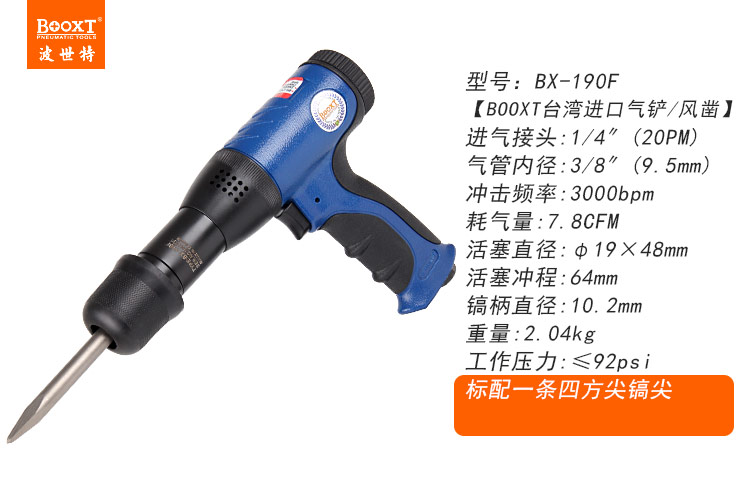 東莞市強勁五金工具提供臺灣BOOXT波世特品牌,減震型氣動鏟子BX-190F廠家直銷,首件享特價。咨詢熱線:4008301980