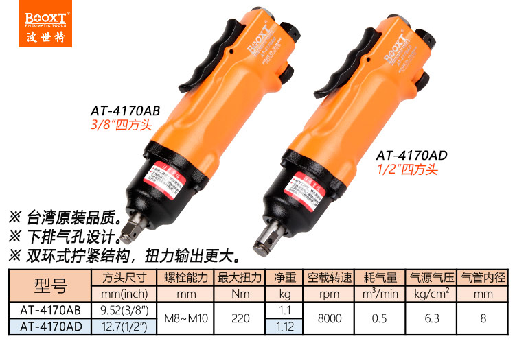 東莞市強(qiáng)勁五金工具有限公司提供臺灣BOOXT波世特品牌氣動(dòng)工具,直柄氣動(dòng)扳手AT-4170AB廠家直銷,首件享特價(jià)。咨詢熱線:4008301980