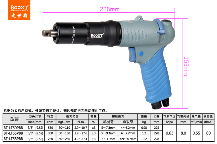 本機(jī)為扳機(jī)啟動(dòng)式,外調(diào)扭力(帶外殼保護(hù)),自動(dòng)斷氣式。