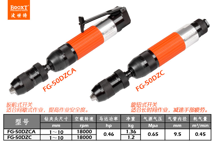東莞市強(qiáng)勁五金工具有限公司提供臺灣BOOXT波世特品牌氣動工具,自鎖氣動鉆FG-50DZC廠家直銷,首件享特價。咨詢熱線:4008301980