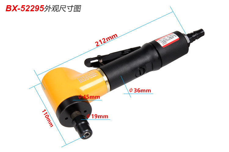• 產(chǎn)品參數(shù): 夾頭能力:M3,M6 (標(biāo)配M6) 馬達(dá)功率:0.7HP 空載轉(zhuǎn)速:18000rpm 耗 氣 量:0.35m3/min 全 長:212mm 重 量 : 0.84kg 噪 音 值:87db(A) 【工業(yè)型】