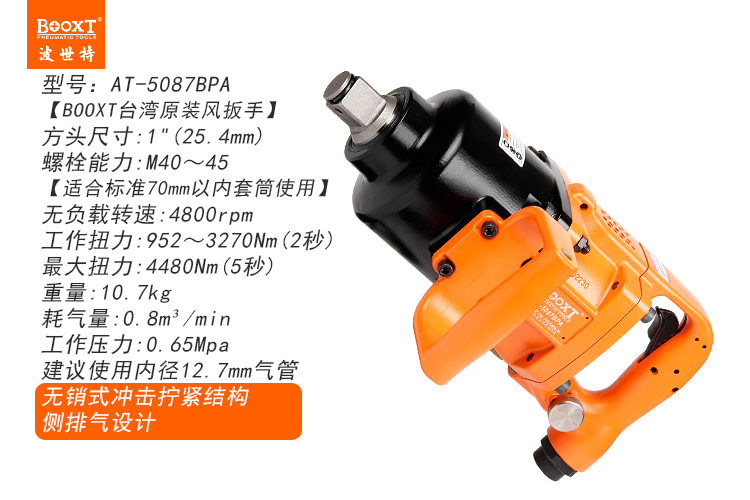 東莞市強勁五金工具有限公司提供臺灣BOOXT波世特品牌氣動工具,無銷式風炮AT-5087BPA廠家直銷,首件享特價。咨詢熱線:4008301980