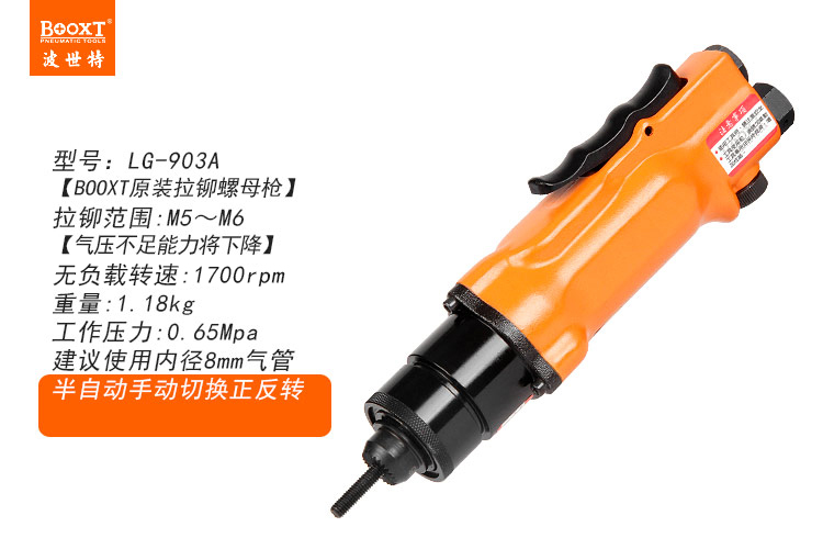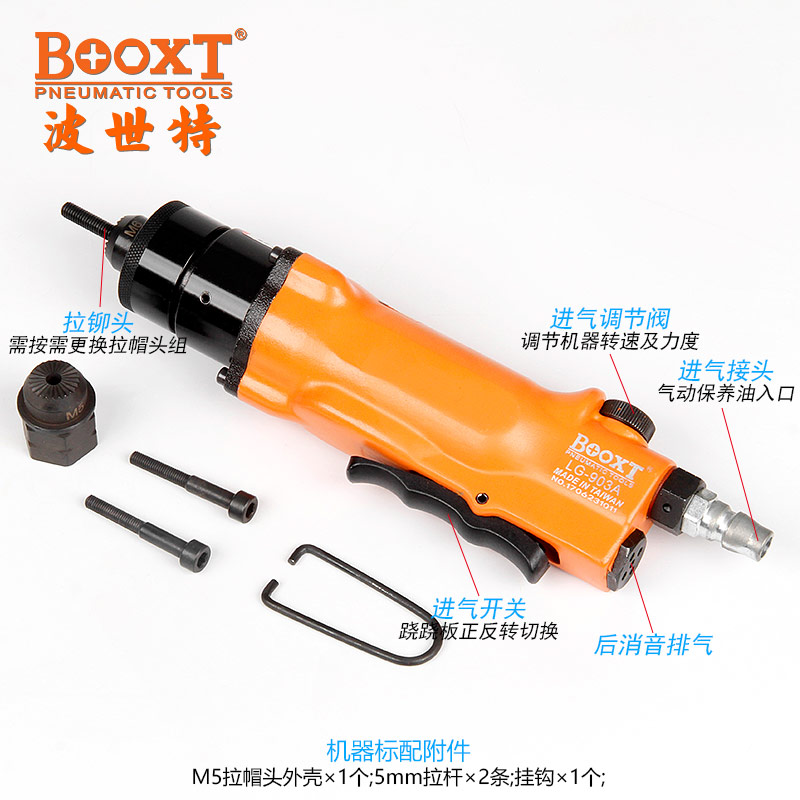 東莞市強勁五金工具有限公司提供臺灣BOOXT波世特品牌氣動工具,氣動鉚螺母槍LG-903A廠家直銷,首件享特價。咨詢熱線:4008301980