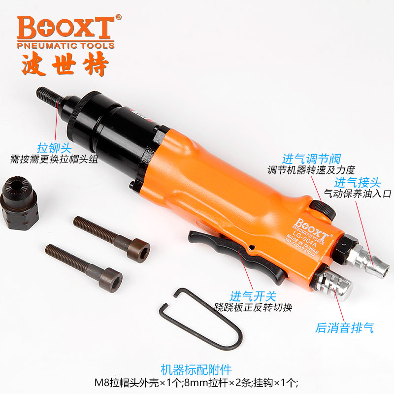 東莞市強勁五金工具有限公司提供臺灣BOOXT波世特品牌氣動工具,氣動拉螺帽槍LG-904A廠家直銷,首件享特價。咨詢熱線:4008301980