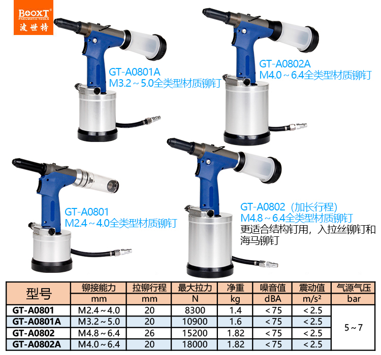 東莞市強(qiáng)勁五金工具有限公司提供臺(tái)灣BOOXT波世特品牌氣動(dòng)工具,氣動(dòng)拉釘鉚槍GT-A0802A廠家直銷,首件享特價(jià)。咨詢熱線:4008301980