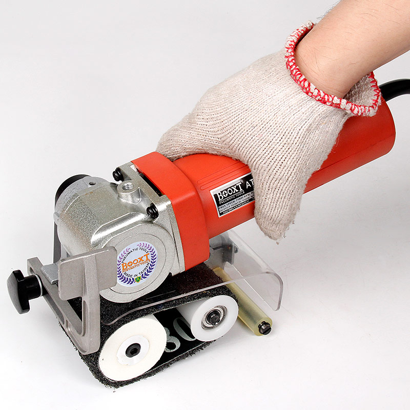 1)使用不同砂粒的砂帶或尼龍拉絲帶,對狹小、復雜、焊縫、點焊、小角度、死角處凹凸面等普通打磨機無法進入的部位進行研磨、打磨、拋光、拉絲、倒角、去毛刺、涂膜作業(yè)等表面處理作業(yè)。