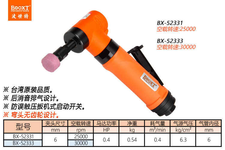 東莞市強(qiáng)勁五金工具有限公司提供臺(tái)灣BOOXT波世特品牌氣動(dòng)工具,直角風(fēng)磨機(jī)BX-52333廠家直銷,首件享特價(jià)。咨詢熱線:4008301980