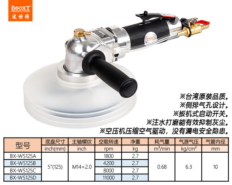 東莞市強勁五金工具有限公司提供臺灣BOOXT波世特品牌氣動工具,氣動石材磨邊機BX-WS125A廠家直銷,首件享特價。咨詢熱線:4008301980