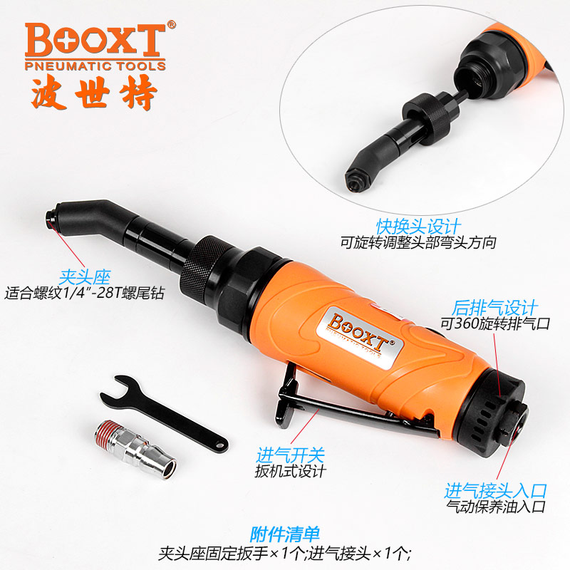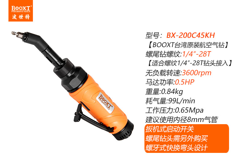 東莞市強勁五金工具有限公司提供臺灣BOOXT波世特品牌氣動工具,偏角螺紋柄氣鉆BX-200C45KH廠家直銷,首件享特價。咨詢熱線:4008301980