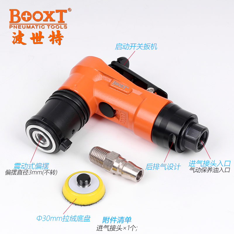 • 產(chǎn)品參數(shù): 底盤尺寸:30mm (圓形1寸) 偏擺直徑:3mm 空載轉(zhuǎn)速:8000rpm 頭部高度:91mm 機(jī)身長度:120mm 重 量:0.42kg 耗 氣 量:0.4m3/min 【工業(yè)型/振動(dòng)式】