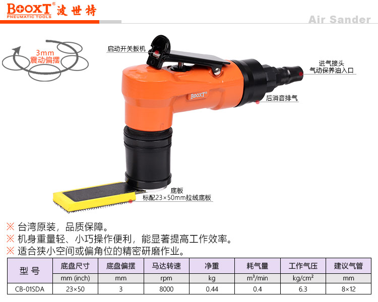 東莞強勁五金工具有限公司提供臺灣BOOXT波世特氣動工具,氣動方形打磨機CB-01SDA廠家直銷,首件享特價。咨詢熱線:4008301980