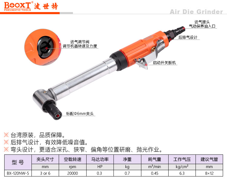 東莞市強(qiáng)勁五金工具有限公司提供臺(tái)灣BOOXT波世特品牌氣動(dòng)工具,加長(zhǎng)彎頭風(fēng)磨機(jī)BX-120NW-5廠家直銷,首件享特價(jià)。咨詢熱線:4008301980