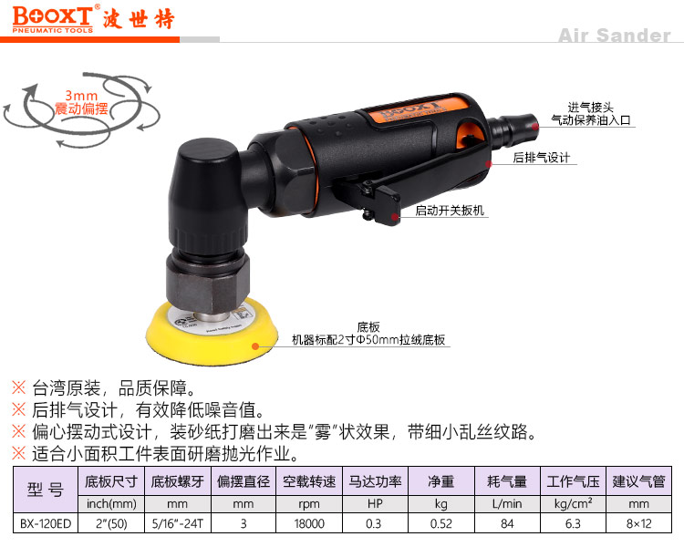 東莞強(qiáng)勁五金工具有限公司提供臺灣BOOXT波世特氣動工具,氣動偏心打磨機(jī)BX-120ED廠家直銷,首件享特價。咨詢熱線:4008301980