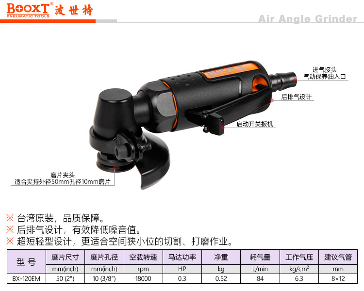 東莞市強(qiáng)勁五金工具有限公司提供臺(tái)灣BOOXT波世特品牌氣動(dòng)工具,超短氣動(dòng)角磨機(jī)BX-120EM廠家直銷,首件享特價(jià)。咨詢熱線:4008301980