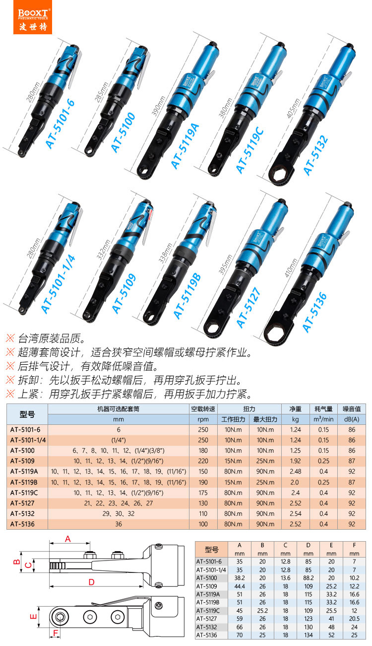 東莞市強(qiáng)勁五金工具有限公司提供臺(tái)灣BOOXT波世特品牌氣動(dòng)工具,穿孔式氣動(dòng)棘輪扳手AT-5100廠家直銷(xiāo),首件享特價(jià)。咨詢(xún)熱線(xiàn):4008301980