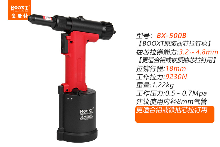東莞市強(qiáng)勁五金工具有限公司提供臺(tái)灣BOOXT波世特品牌氣動(dòng)工具,氣動(dòng)拉釘槍BX-500B廠家直銷,首件享特價(jià)。咨詢熱線:4008301980